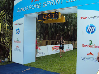 she felt quite sore from all the friction, got herself some real good breather when pulling the bike back to the parking area. she started slow in the running, and kept that pace, since the sun is getting very hot by now. she took 40 minutes to finish the 5km, a nit slow, but it was a very good triathlon after all.
